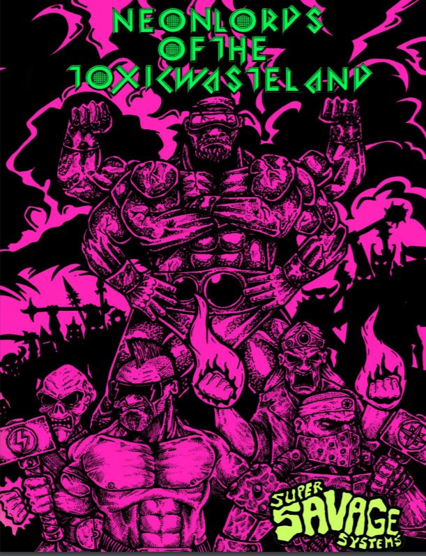 If other recent indie RPG Neurocity represented a more sober Orwellian take on our grim potential future, then NEON LORDS OF THE TOXIC WASTELAND by Brian Shutter (with rad Oldhammer art by Mustafa Bekir) is by contrast all Mad Max, direct to video Salute of the Jugger, Megadeth album art with a dash of The Warriors. This is not the harrowing post nuclear vale of the BBC’s THREADS. This is Thunderdome on too much Pepsi. Wrestlemania via Repo Man. Urban decay and wasteland chic. Fallout on an all junk food diet. And as such, whether consciously or not, it seeks to wrest some kind of weird comfort from the winds of plague and vertiginous stock ticker spikes, transmuting them through that 80’s lens into a rusted dustbowl where we can actually have fun as we all die horribly.