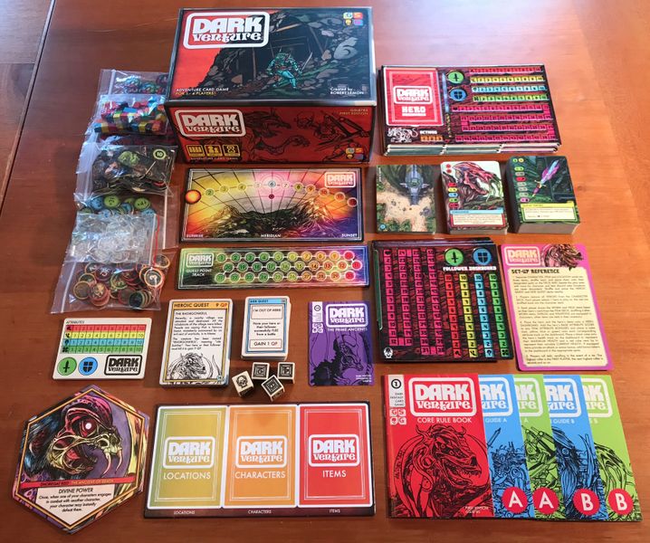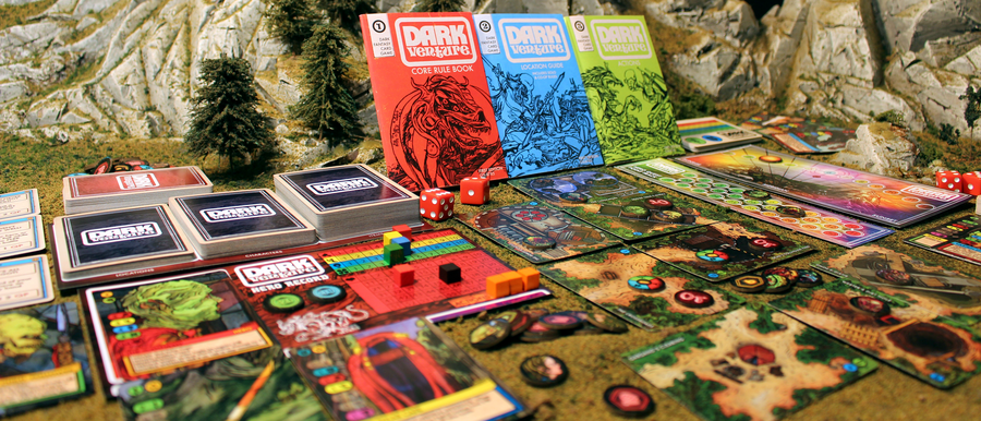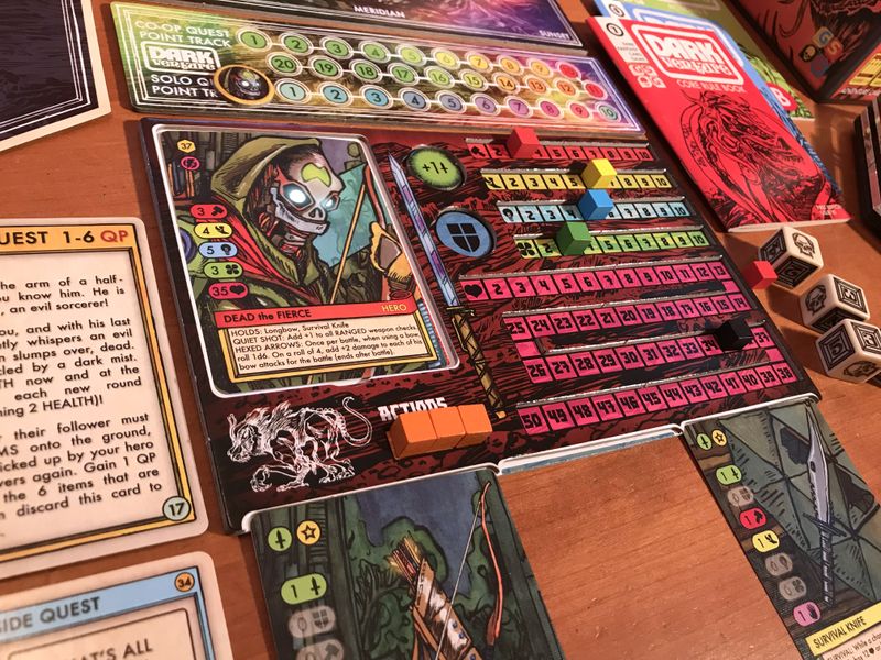 Hurling mechanics into the pot with an apothecary’s relish -Dark Venture is simultaneously a tile based overland crawl/deck building/hand and inventory management/choose-your-own-adventure/dice rolling/combat heavy/asymmetric player power/take that/exploration based/RPG infused experience – where players compete to complete quests both heroic and mundane all within the space of one turbulent day in a seismically upended post-cataclysmic world.