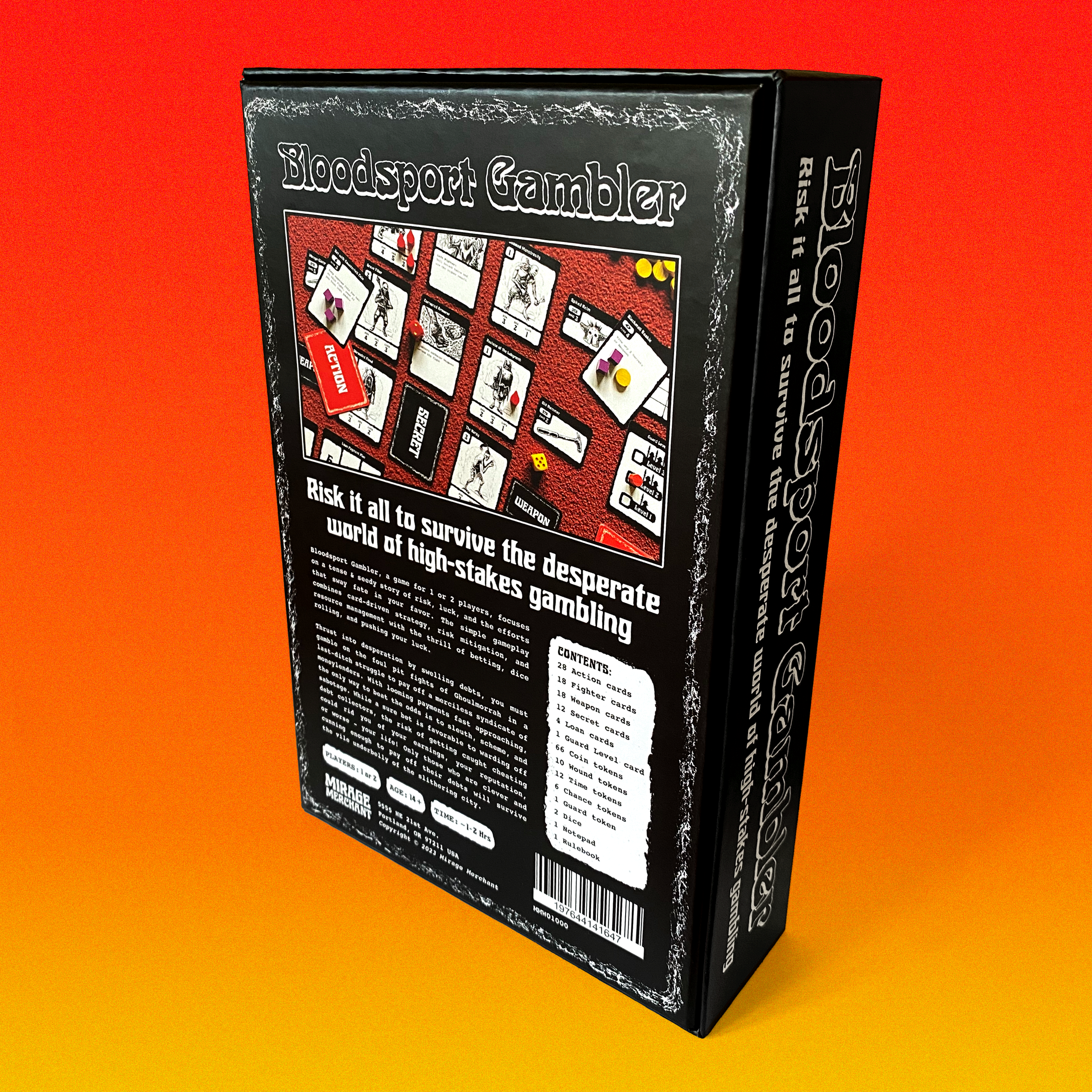 Bloodsport Gambler, the debut title by Dillon Morton and Mirage Merchant Games places 1-2 players in the unfortunate shoes of just such a protagonist. Forced to risk it all wagering on the sadistic gladiatorial contests hosted by the Council of Ghoulmorrah to sate the basest appetites of a ravening public.